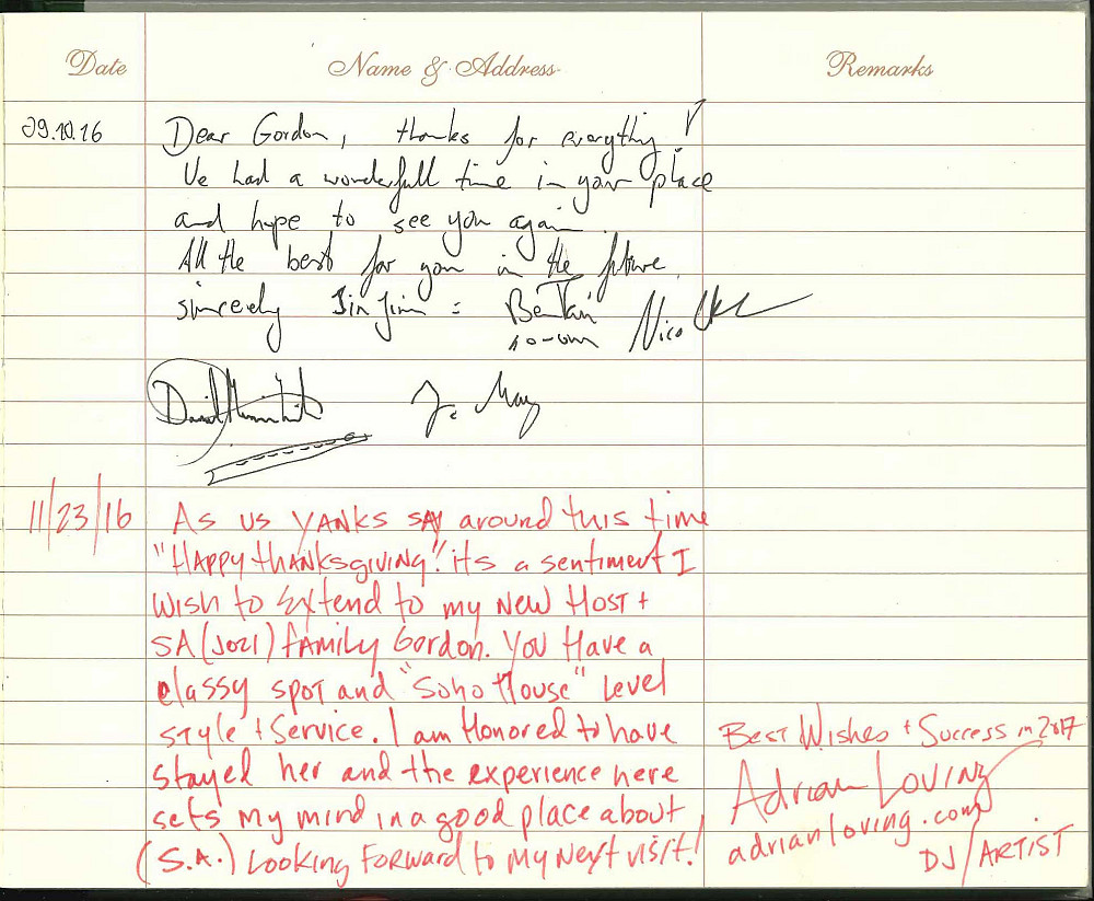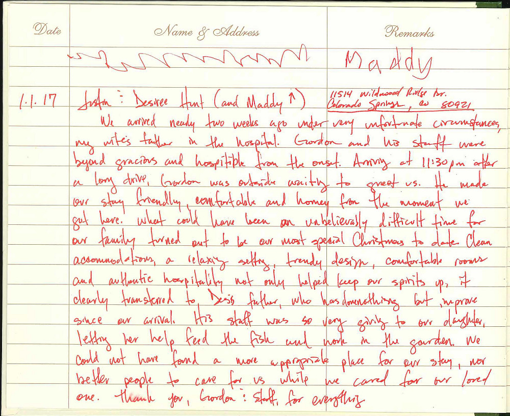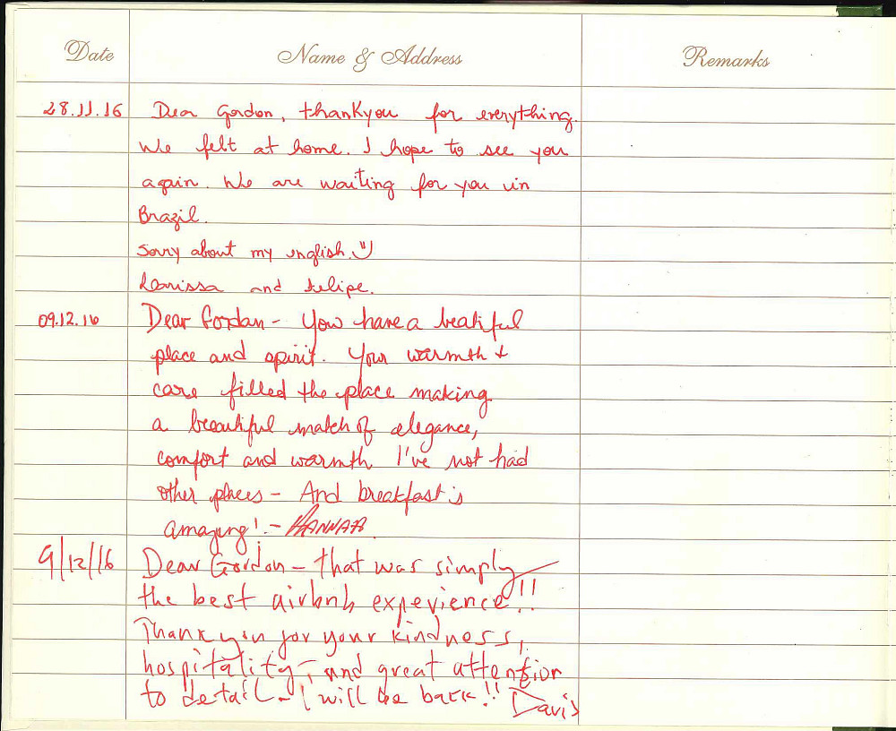 Comments from previous guests that have stayed with us at Thornton Gap Guesthouse – Please click on the page to enlarge.